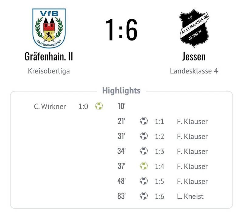 Mit einem Pflicht- bzw. Arbeitssieg ziehen unsere Jungs problemlos ins Viertelfinale des Kreispokals ein. Die Jungs der 2.Mannschaft des VfB Gräfenhainichen konnten zwar durch einen Elfmeter in Führung gehen, doch Felix Klauser sorgte mit einem Fünferpack in 27 Minuten (!!) für klare Verhältnisse. In der 2.Halbzeit schalteten unsere Jungs mehrere Gänge runter, sodass zudem auch kein wirklicher Spielfluss mehr zustande kam. Den 6.Treffer erzielte am Ende Luca Kneist!
