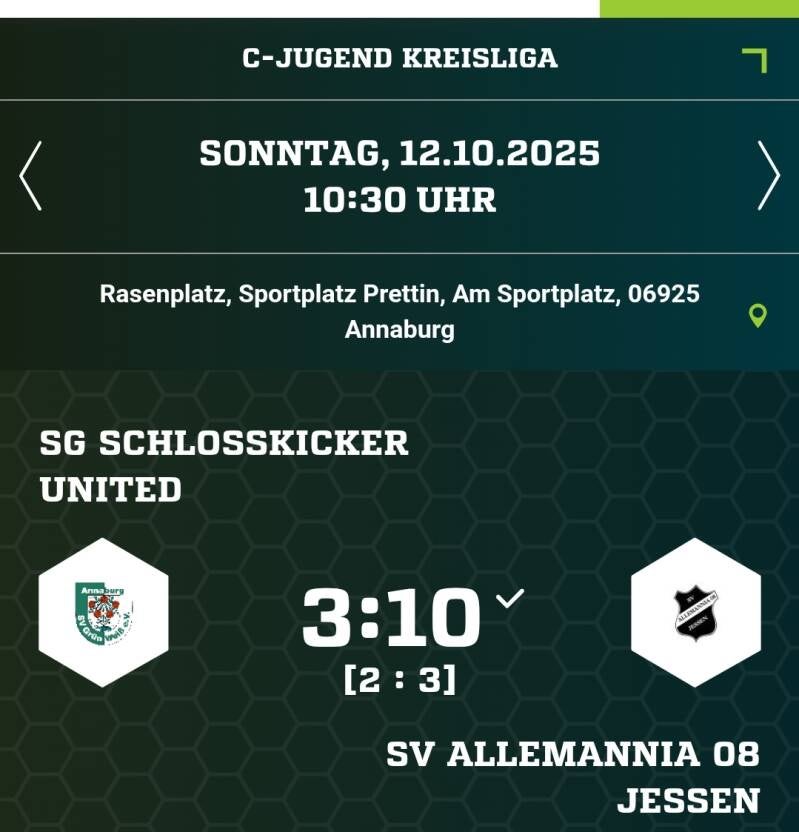 Auswärtsspiel am Sonntag 12.10.2025 10:30 Uhr in Prettin gegen Schlosskicker