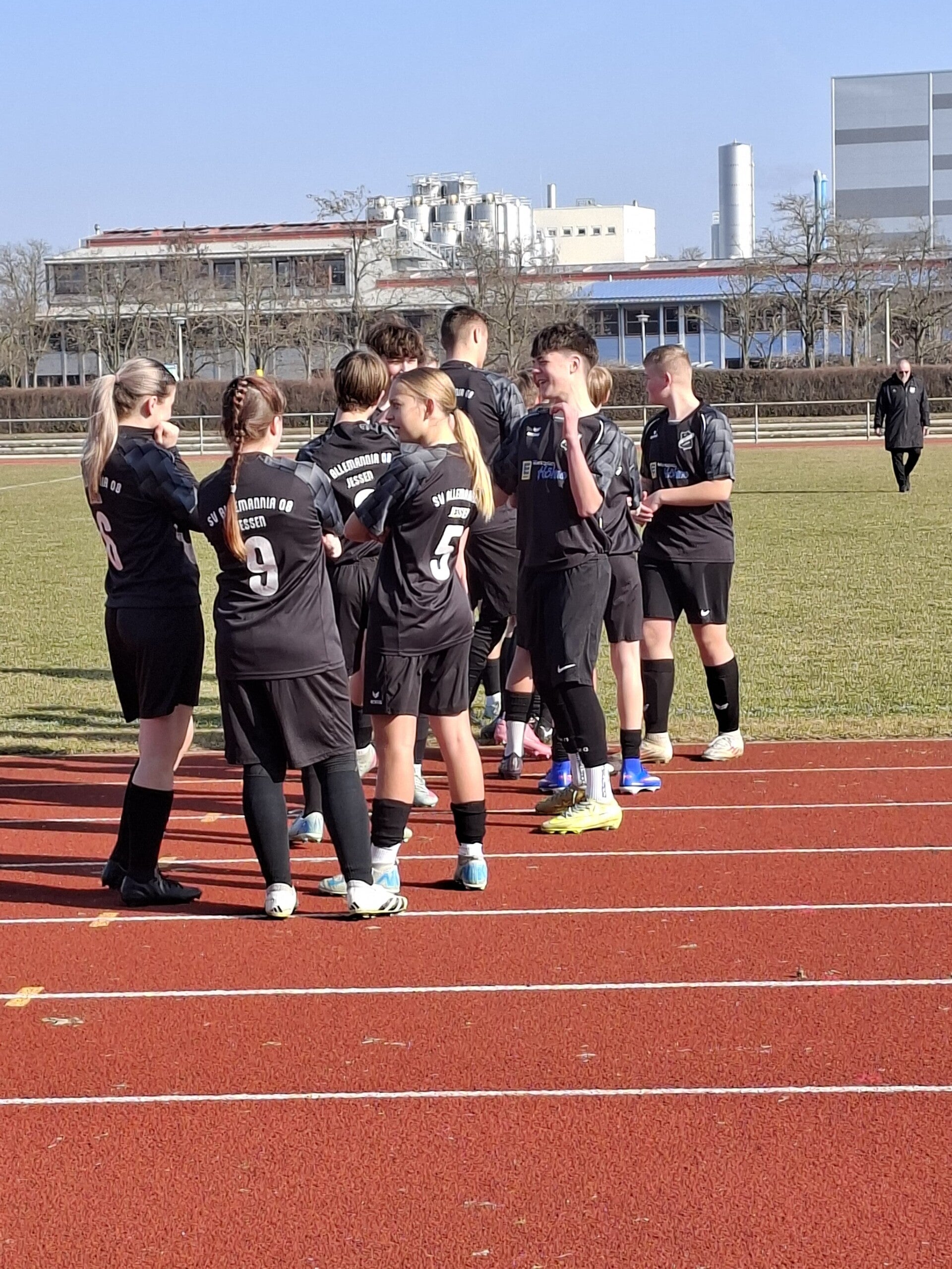 Aufstellung : Chris, Fynn, Tyler, Cedric, Malte, Luca, Joko, Lio, Ole, - Lucy, Joana, Alina, Luis